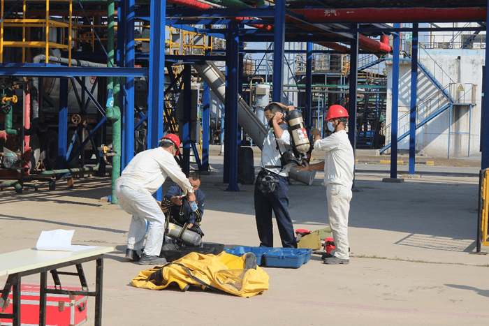 9月30日上午,公司为贯彻落实加强重大危险源管控及国庆节日、二十大召开的重要时期的安全生产,公司按惯例认真组织开展了秋季重大危险源专项应急演练,本次活动是针对液氯管道的假设泄漏进行抢险实练。各职能小组依据自己的职责,按设定工作要领进行并完成工作。公司领导朱巧根、潘旭东参加了活动,并对演练情况作了总结。